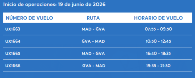 Con el inicio de la temporada estival y de manera permanente, Air Europa contará con dos vuelos que partirán desde Madrid a la ciudad suiza a las 7:55 y a las 16:40. Los vuelos en sentido opuesto despegarán desde Ginebra a las 10:50 y a las 19:35, lo que multiplicará las posibilidades de elección para los clientes.